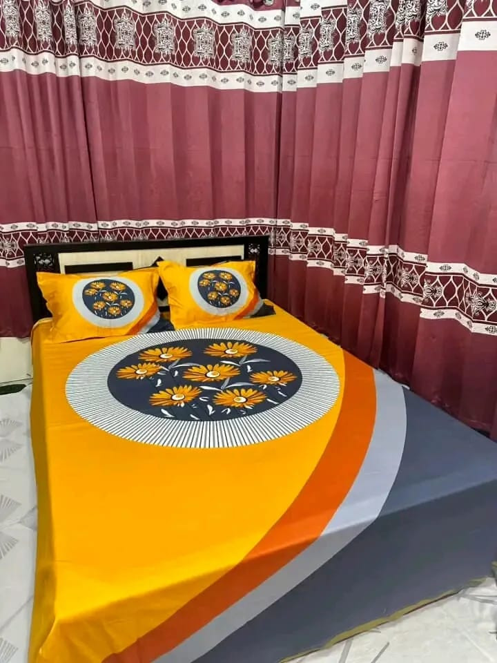 সাথে দুটো সেলাই করা মাথার বালিশের কাভার আছে