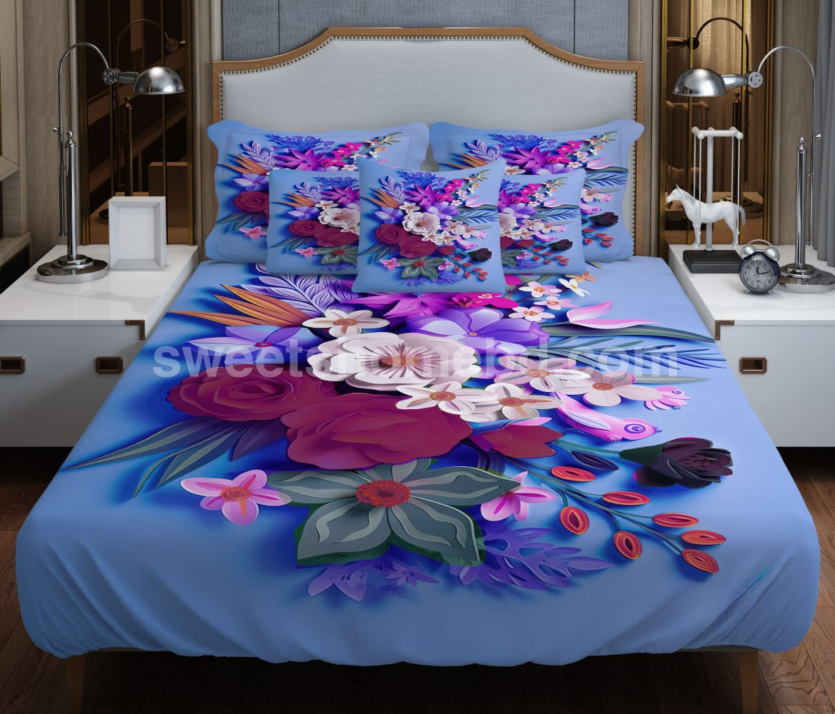 চিলিকট ফেব্রিকের 3D ডিজাইনের বেডশিট, বালিশ এবং কোলবালিশের কভার।