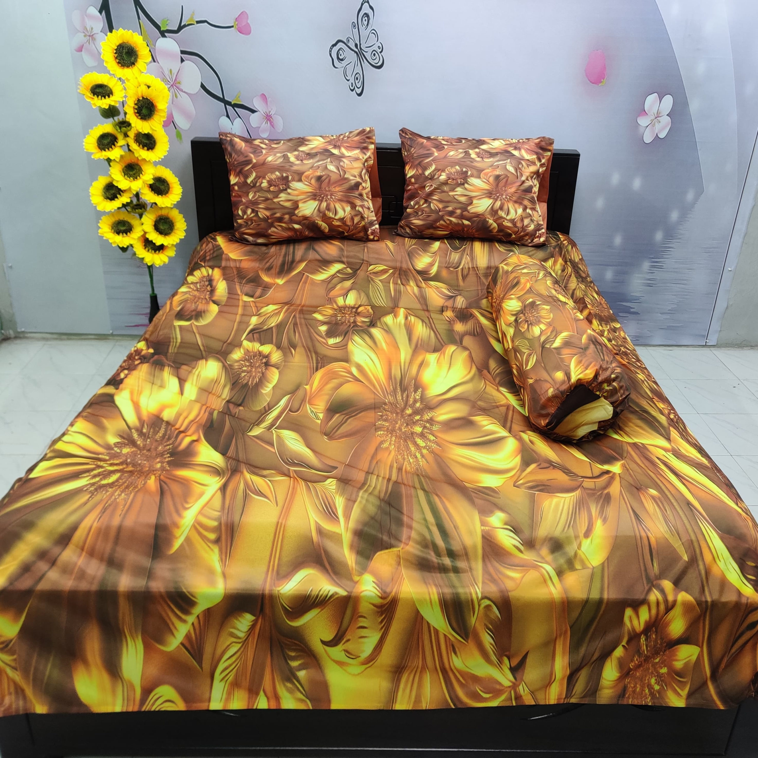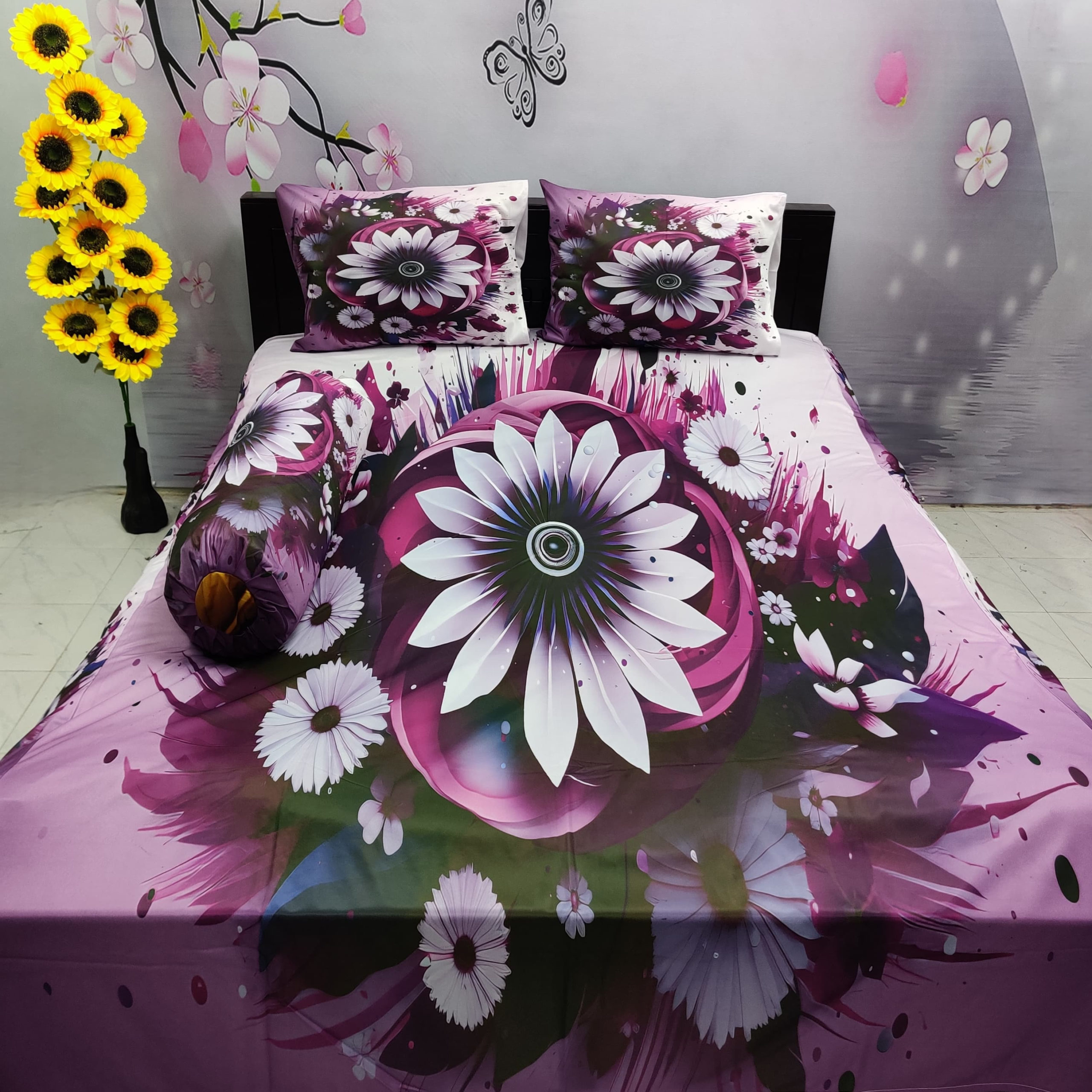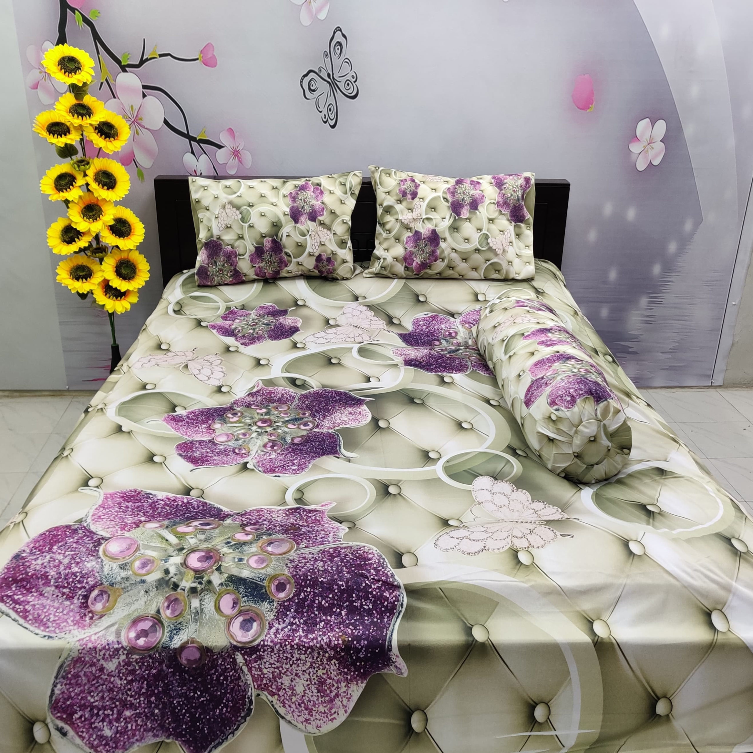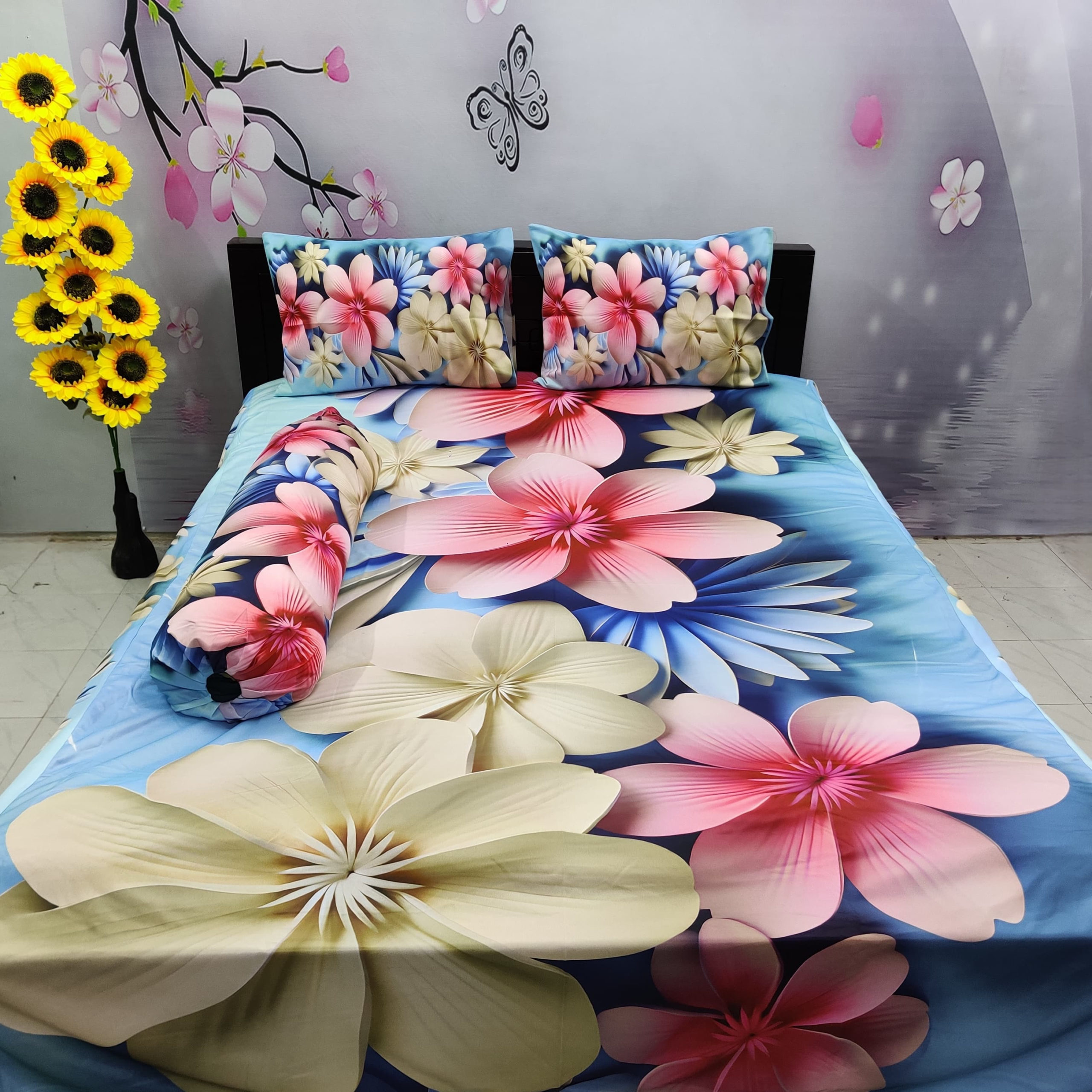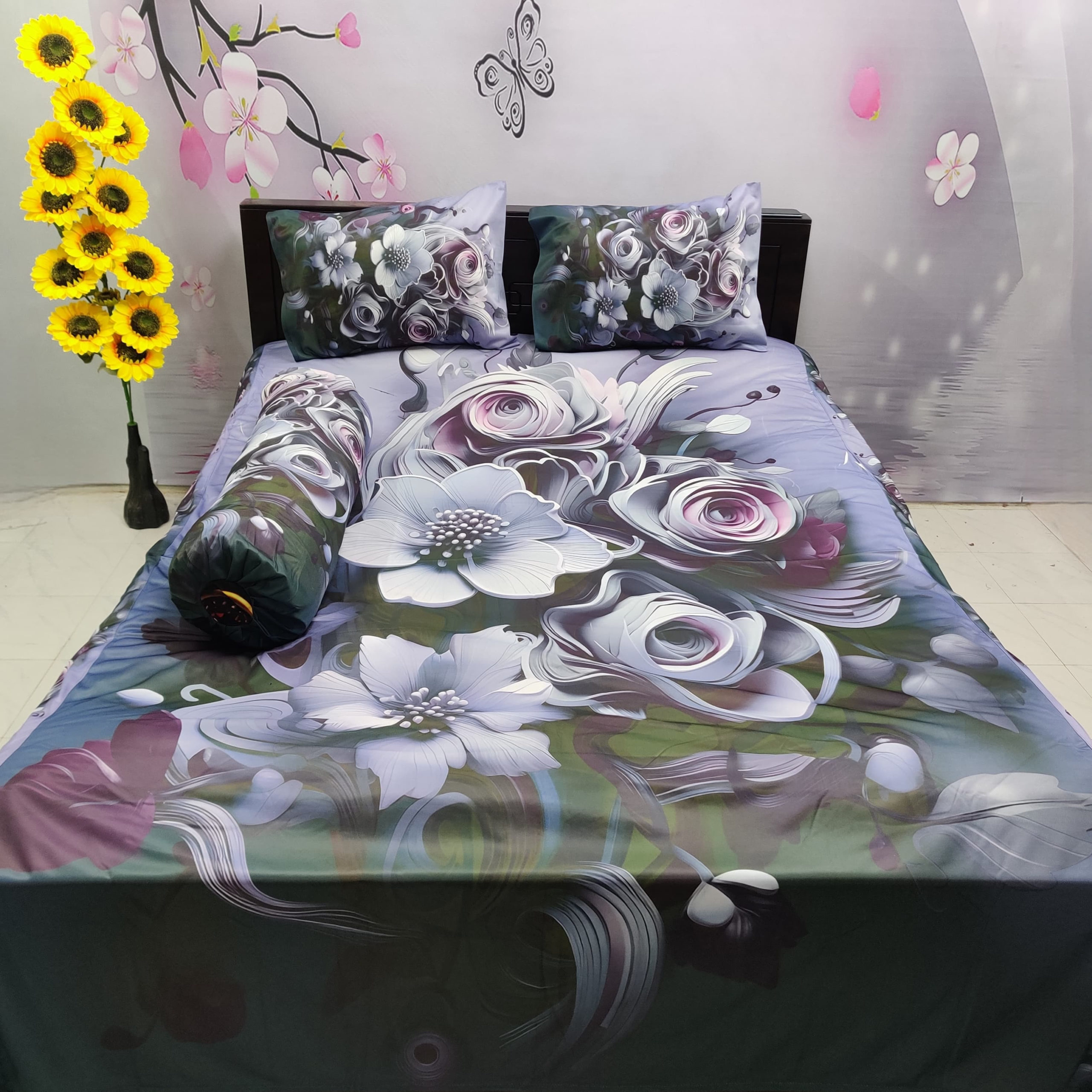চিলিকট ফেব্রিকের 3D ডিজাইনের বেডশিট, বালিশ এবং কোলবালিশের কভার।